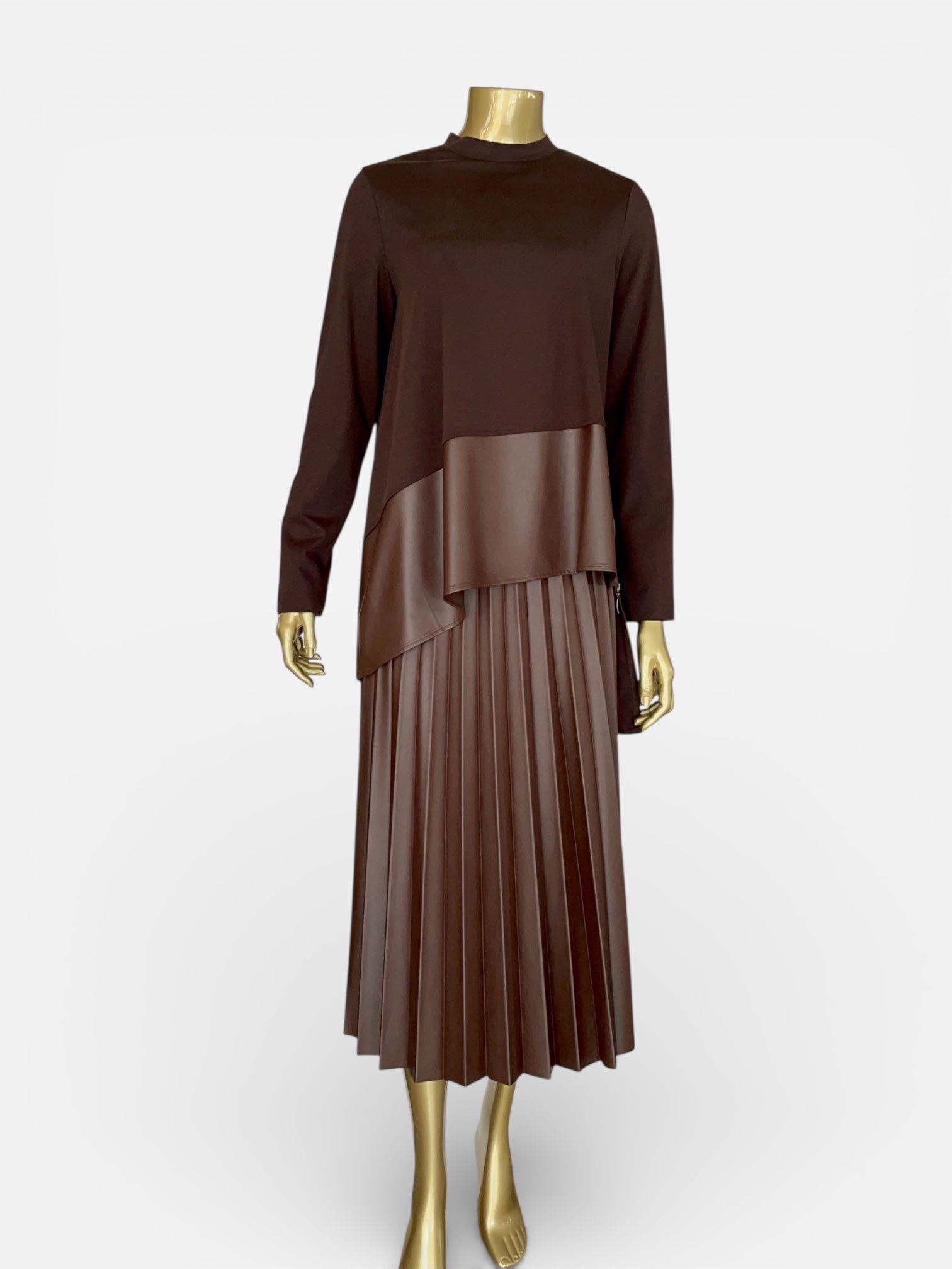 Bambu penye ve deri detaylı etekli takım